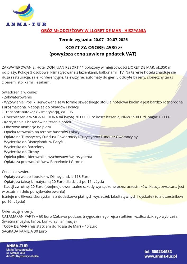 Obóz młodzieżowy w Lloret de Mar