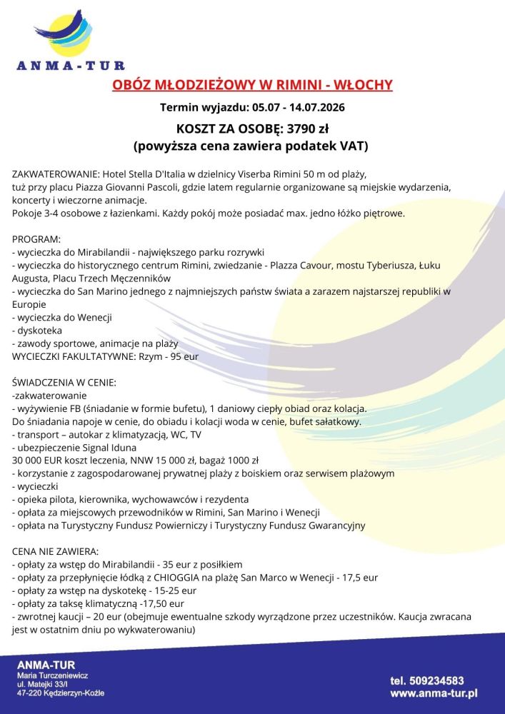 Obóz młodzieżowy w Rimini